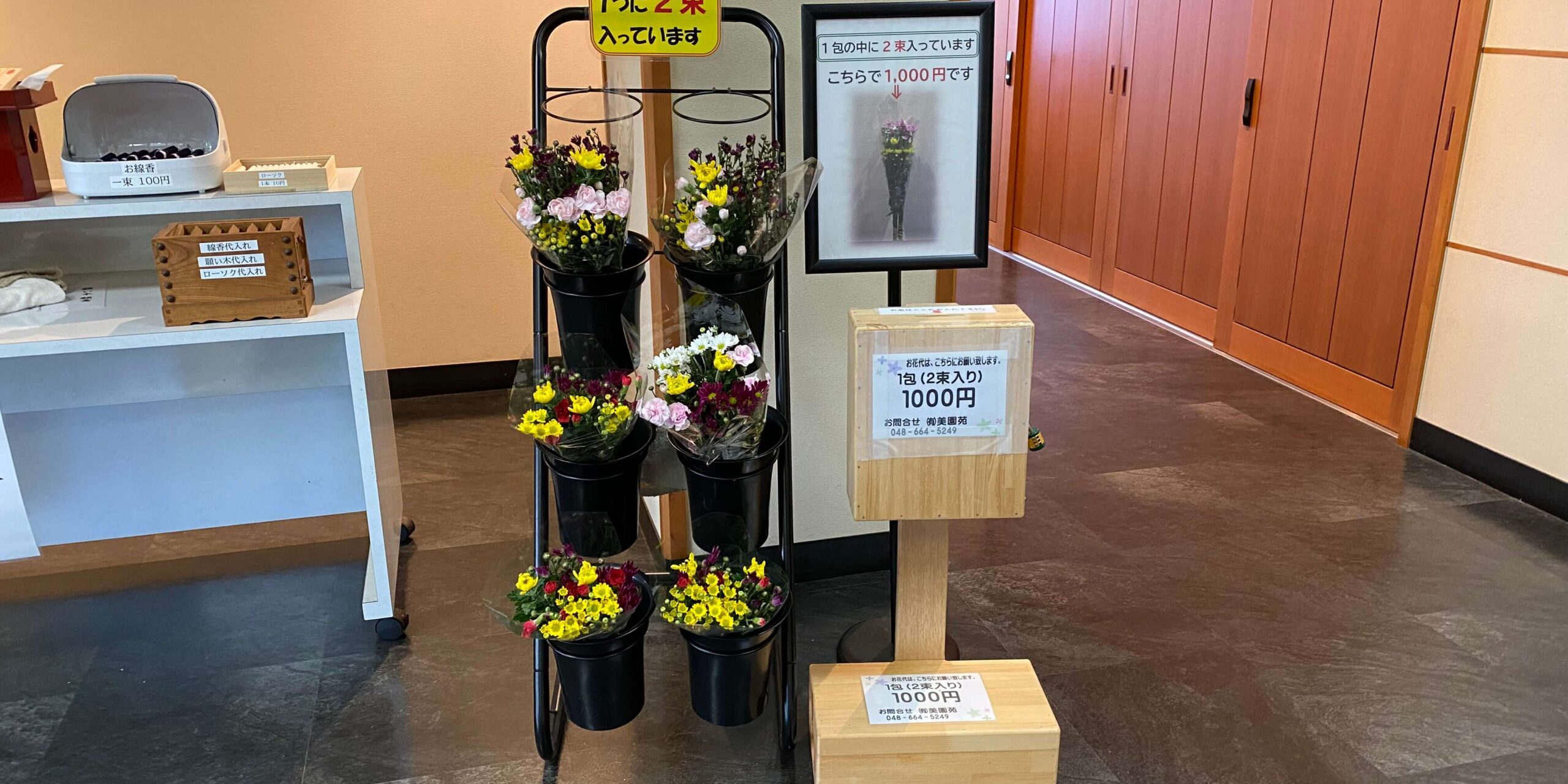 3月12021お知らせ 本堂1階ロビーにて墓地用生花の販売をしております。 お盆やお彼岸の時期だけではなく、いつでもお求めいただけるように随時販売をしております。 日頃のお墓参りの時などにぜひご利用ください。 【生花代金】 1包み⇒1,000円(税込) ※1包みで2束入っています 〖※関連記事〗お墓参りの持ち物 Category: お知らせ2021年3月1日 Share this post Share on FacebookShare on Facebook Share on XShare on X Post navigationPreviousPrevious post:阿字の故郷(あじのふるさと)NextNext post:お地蔵様(地蔵菩薩)ってどんな仏様?Related posts令和7年(2025年) 年回忌表2024年4月6日【お知らせ】本堂(正和殿)の開館時間と電話受付時間2022年8月21日《お願い》御朱印でのご来院について2019年9月4日